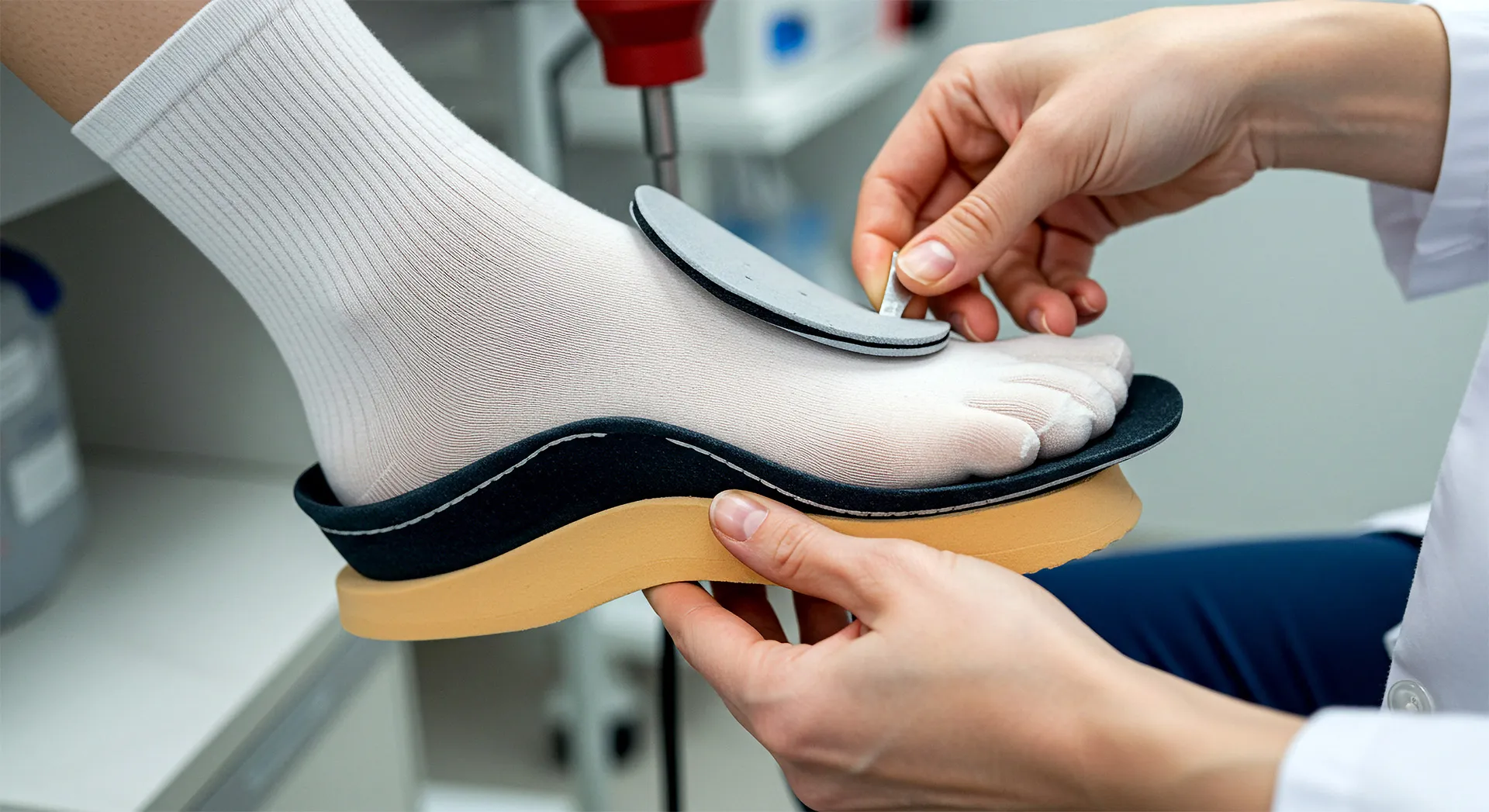 Une chaussure conçue pour protéger le pied, soulager les appuis douloureux et favoriser la marche en cas de pathologie, de déformation ou après une intervention.